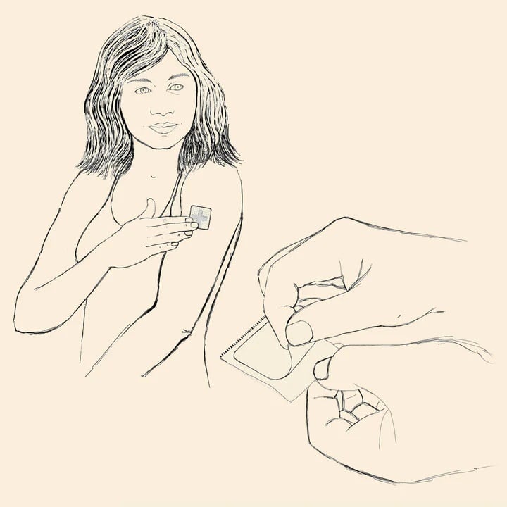 パッチは、肌に貼っても目立ちにくく、体温によって活性化する